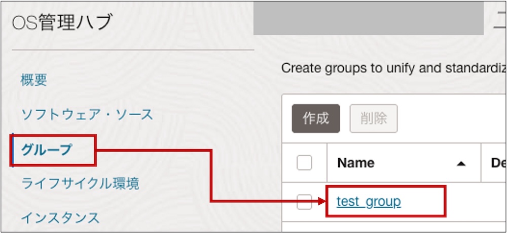 OS管理ハブのリストから[グループ] → [作成] に移動します。配置場所、OSベンダー毎にグループを作成します。
