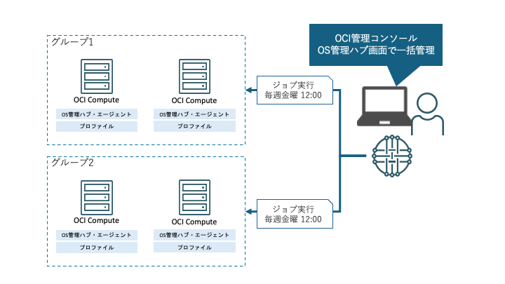 OS管理ハブは、OCI Compute インスタンスを中心に、OS パッチ管理やパッケージ更新を一元管理するためのサービスです。
