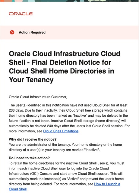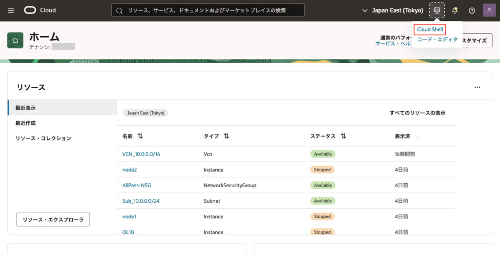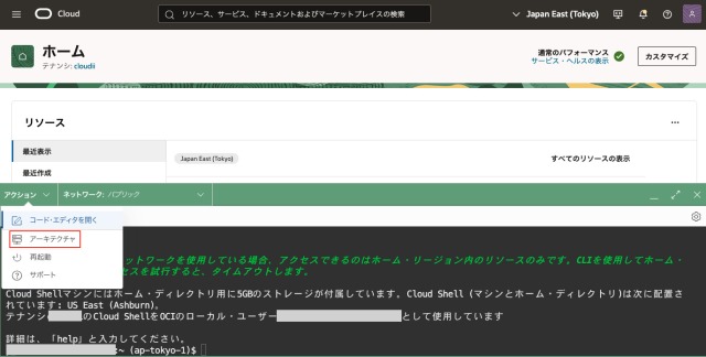 そのため、クラウド・シェルは開発・検証用途で使用、本番利用時は別途コンピュート・インスタンスの利用を推奨します。