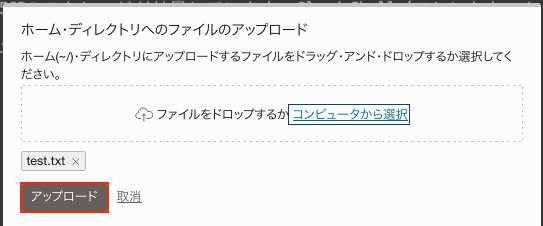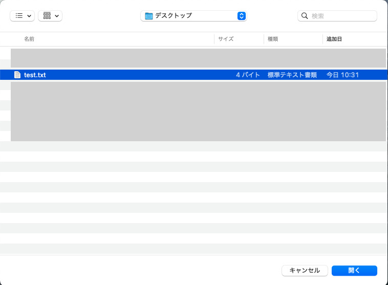 表示されたポップアップから、任意の方法でローカルファイル(ここでは「text.txt」を選択します。