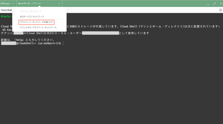 OCI公式ドキュメント - 「クラウド・シェルのネットワーキング」