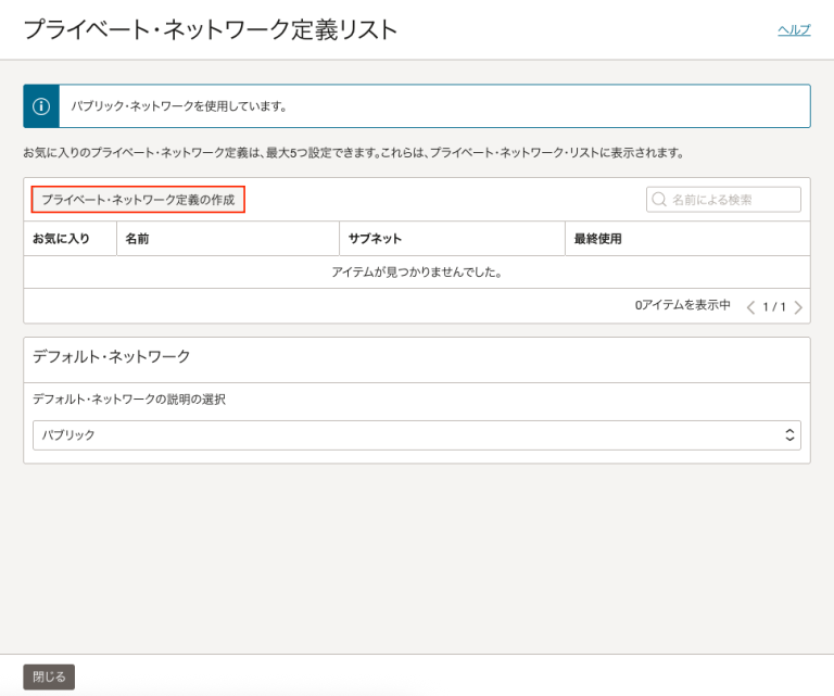 作成が完了すると、プライベート・ネットワーク定義がリストに追加されます。