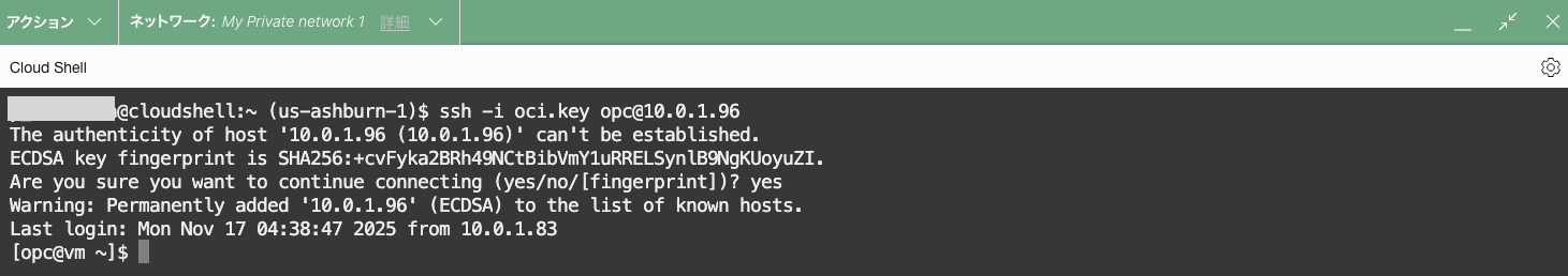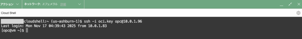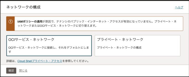 また、注意点として、プライベート・ネットワークは対象のサブネット内に擬似的なSSH接続用のコンピュート・インスタンスが一時的に作成され、そのインスタンス経由でクラウド・シェル・セッションが確立されます。