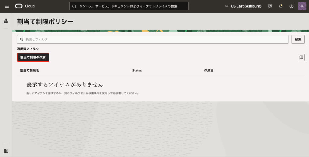 割当て制限ポリシーはホーム・リージョンでのみ設定可能です。