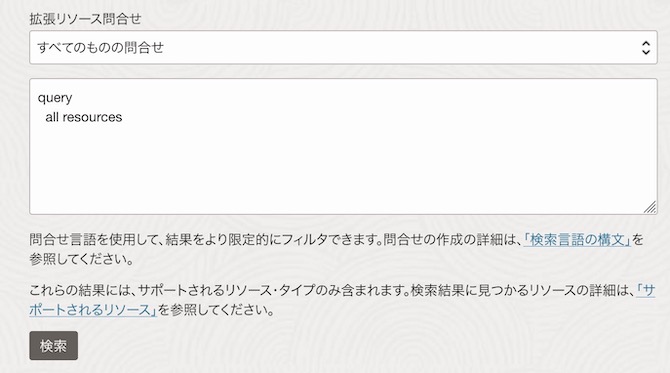 フリーテキスト検索が、キーワードの指定による検索であるのに対して、拡張問い合わせは特定の条件をクエリで指定するタイプの検索です。条件に該当するリソースの一覧が表示されます。