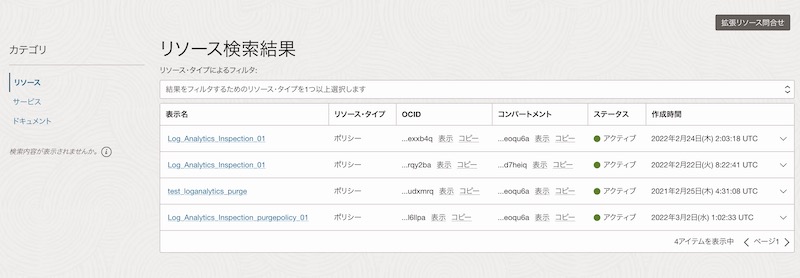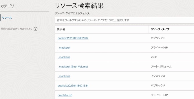 検索に対応するリソースはOCIドキュメントに追加されるらしいので、意図と違う検索結果となった場合は一度確認することをお勧めします。