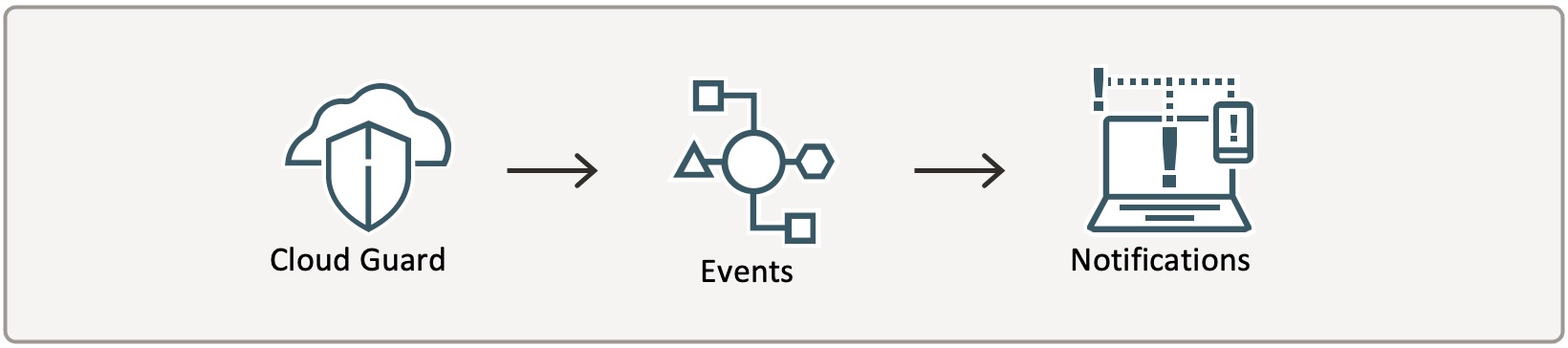 Cloud Guard上で、ディテクタレシピにてイベントを検知し、レスポンダレシピでイベントを発行します。後はパターン1と同様にEvetnsのイベントルールを設定して、Notificationsへ連携します。