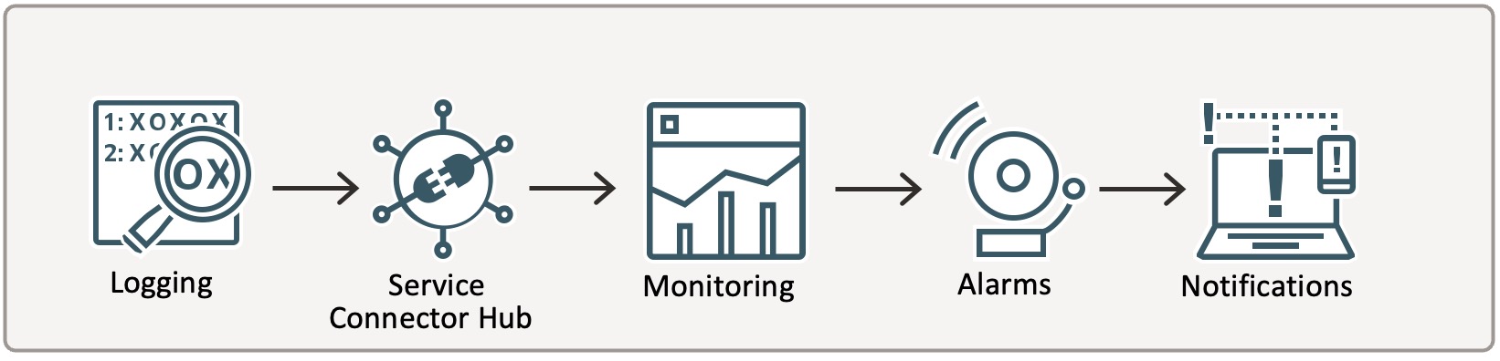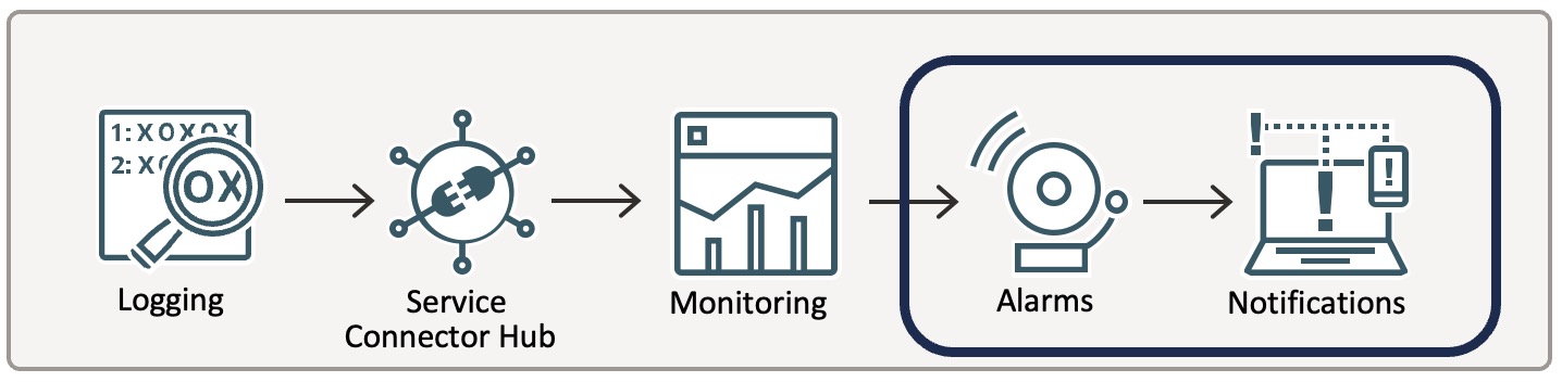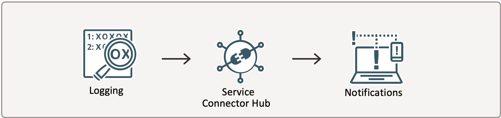 本日は、OCIにおけるイベント通知のパターンそれぞれについて簡単に説明し、その後、OCI監査ログに対してログ監視を設定し、Monitoringでアラームを設定するという手順を紹介します。検証環境がまだIDCS統合前のため、IAMユーザのログイン失敗を扱いますが、IDCS統合後のテナンシでログイン失敗を抽出する条件も記事の最後に記載します。