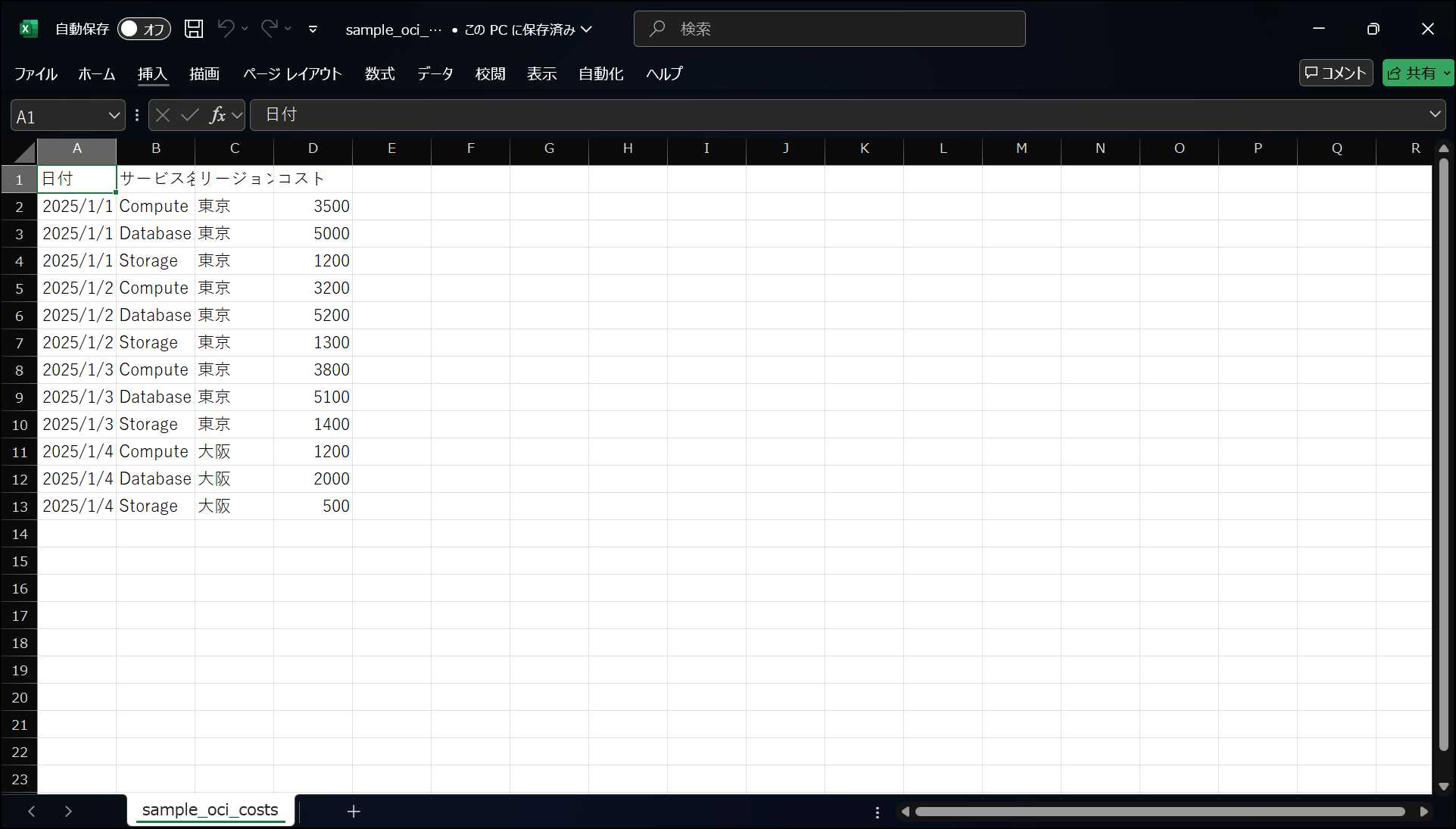 - 5.12 ステップ12:基礎編 OCIコストデータで分析