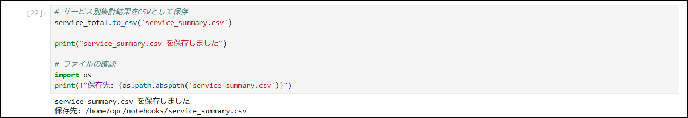 結果: service_summary.csv ファイルが作成されます!
