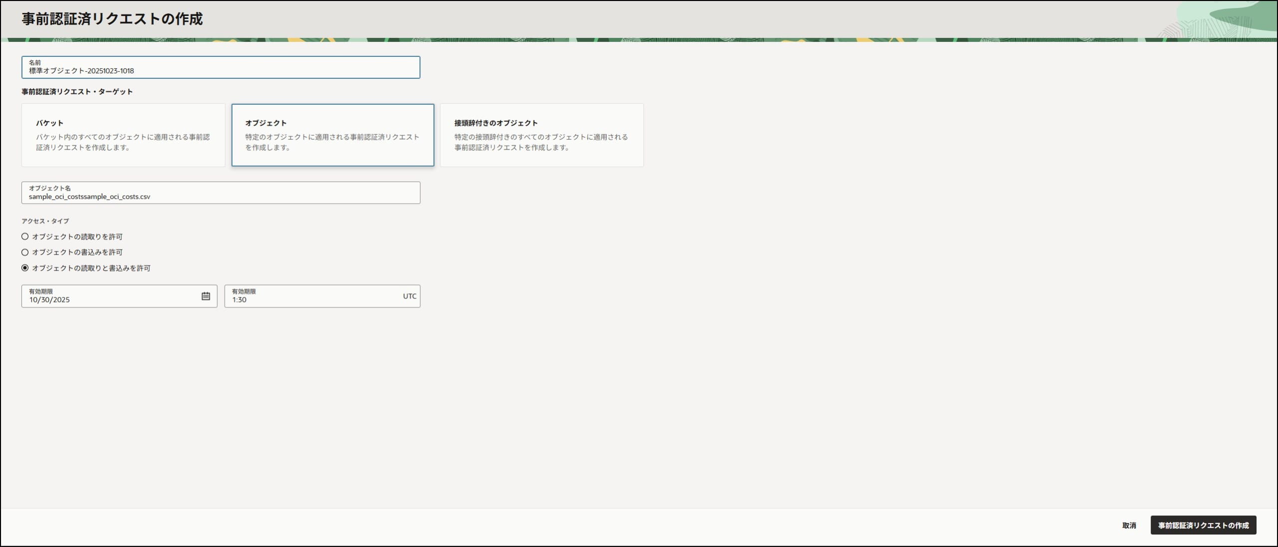 # 事前認証済リクエストのURLurl