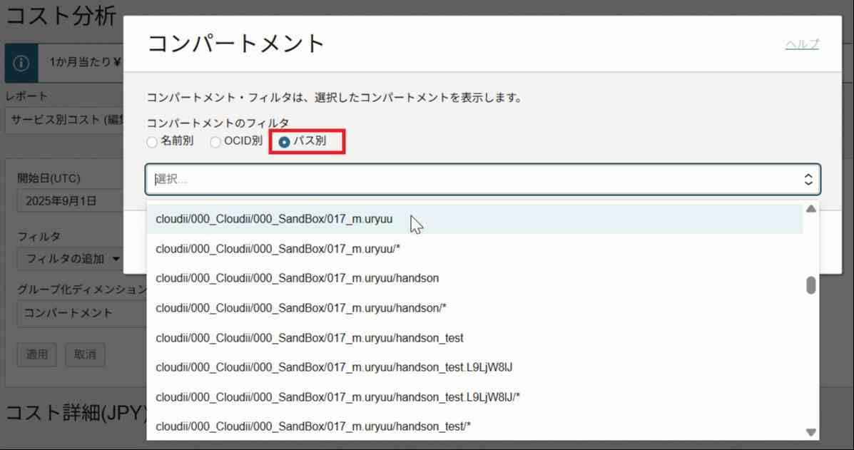 ちなみに画像にある「017_m.uryuu」と「017_m.uryuu/*」の違いですが、後者を選ぶと「017_m.uryuu」コンパートメントと、「017_m.uryuu/handson」のような、その配下の子コンパートメントすべてをフィルタ条件に含めることができます。