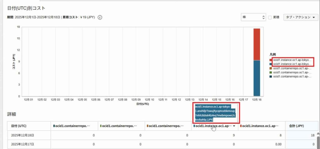 この手順で、課金が発生しているリソースの種類とOCIDを絞り込めます。