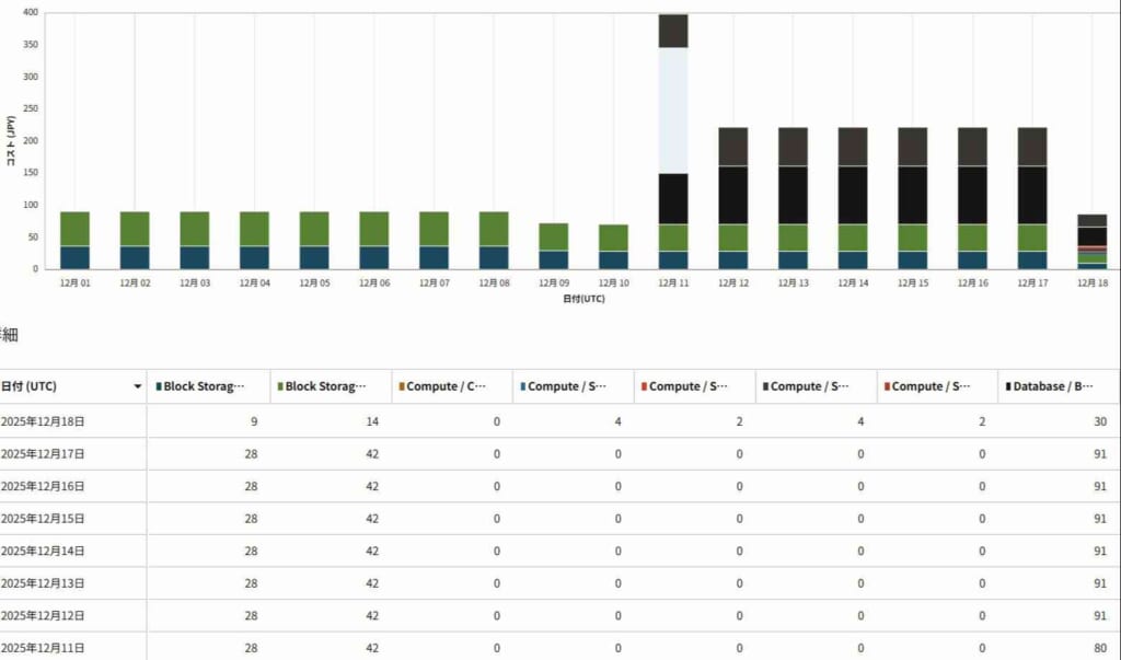 12/18にComputeサービスで課金が発生していることが分かりました。