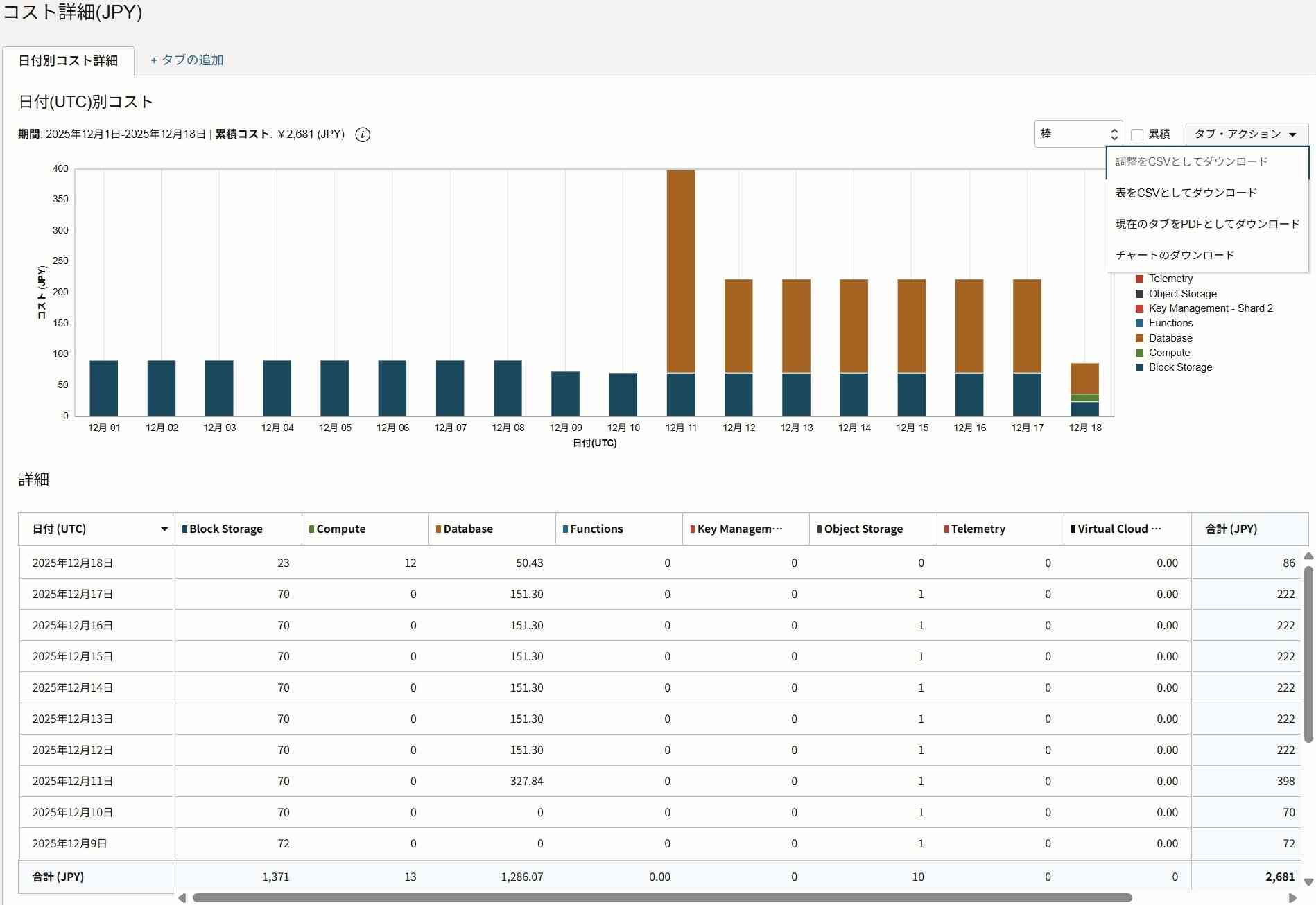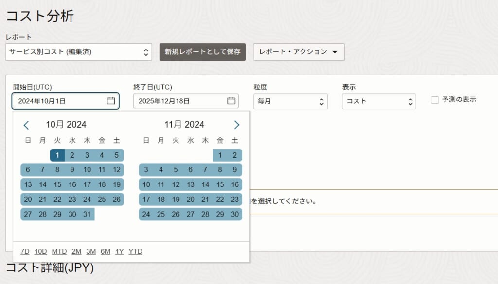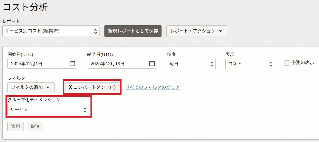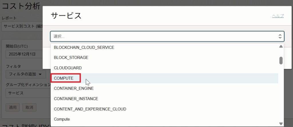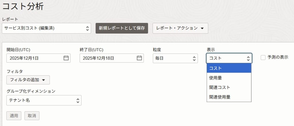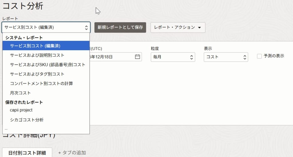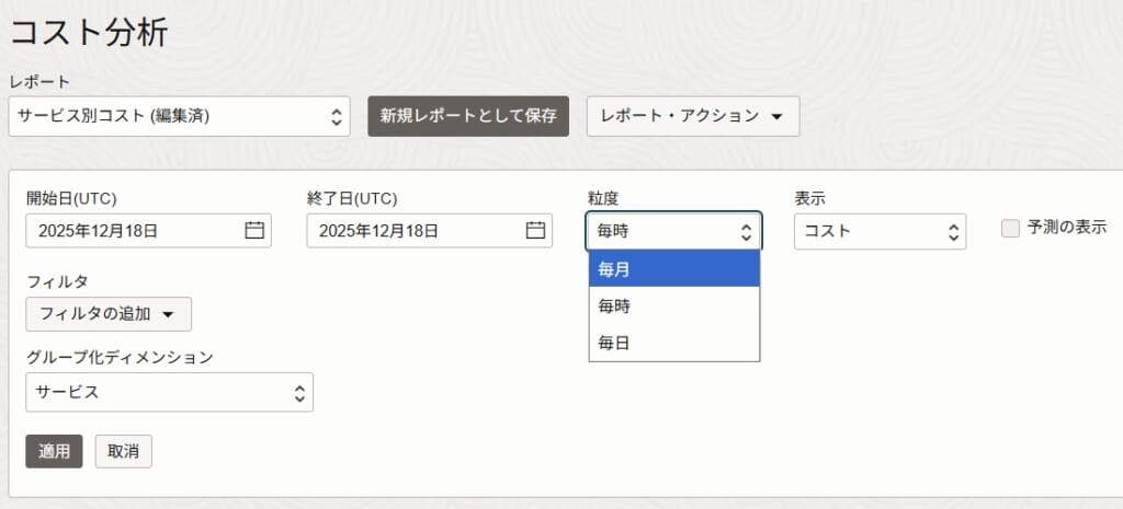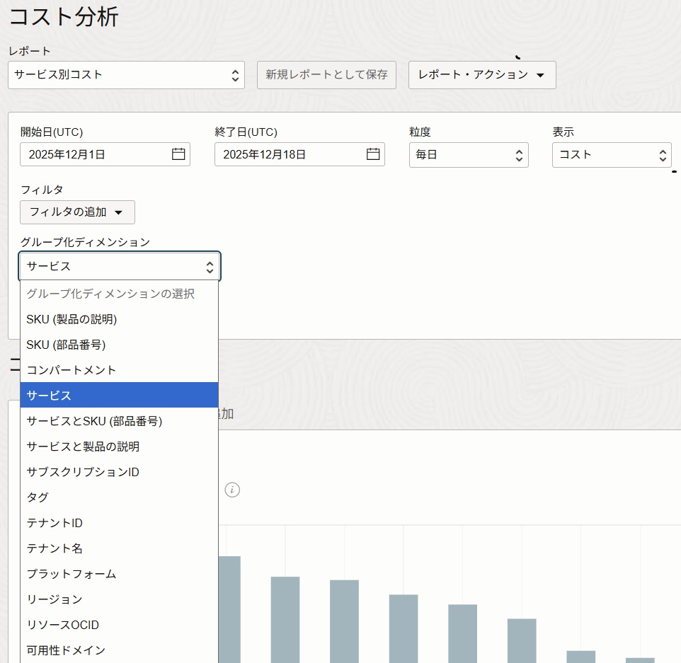 コスト分析サービスでは、主にOracle Cloudの利用料金のトラッキングを行うサービスです。