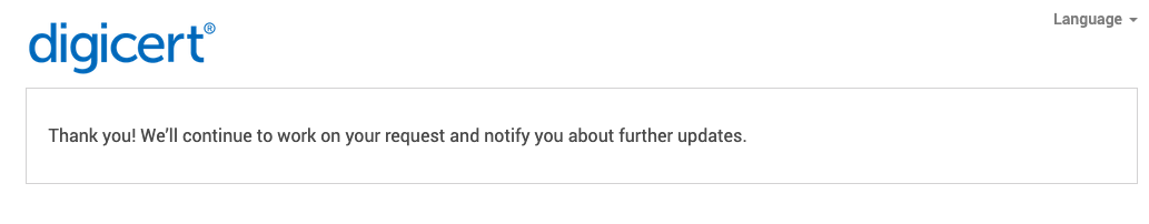 認証方法はシンプルで、申請書に記載の電話番号にDigicertから電話がかかり、ドメイン管理者が応答して本人確認を行うといった手順です。