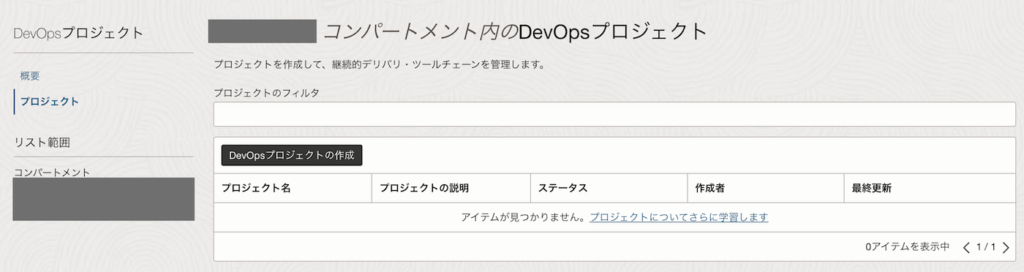 DevOpsの画面に遷移するとDevOpsプロジェクトの作成ボタンがありますので、クリックします。