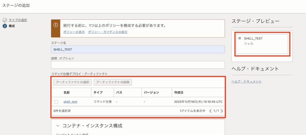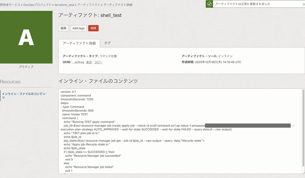 ここで作成したスタックのOCIDをアーティファクトのoci cliコマンド部分に埋め込みます。