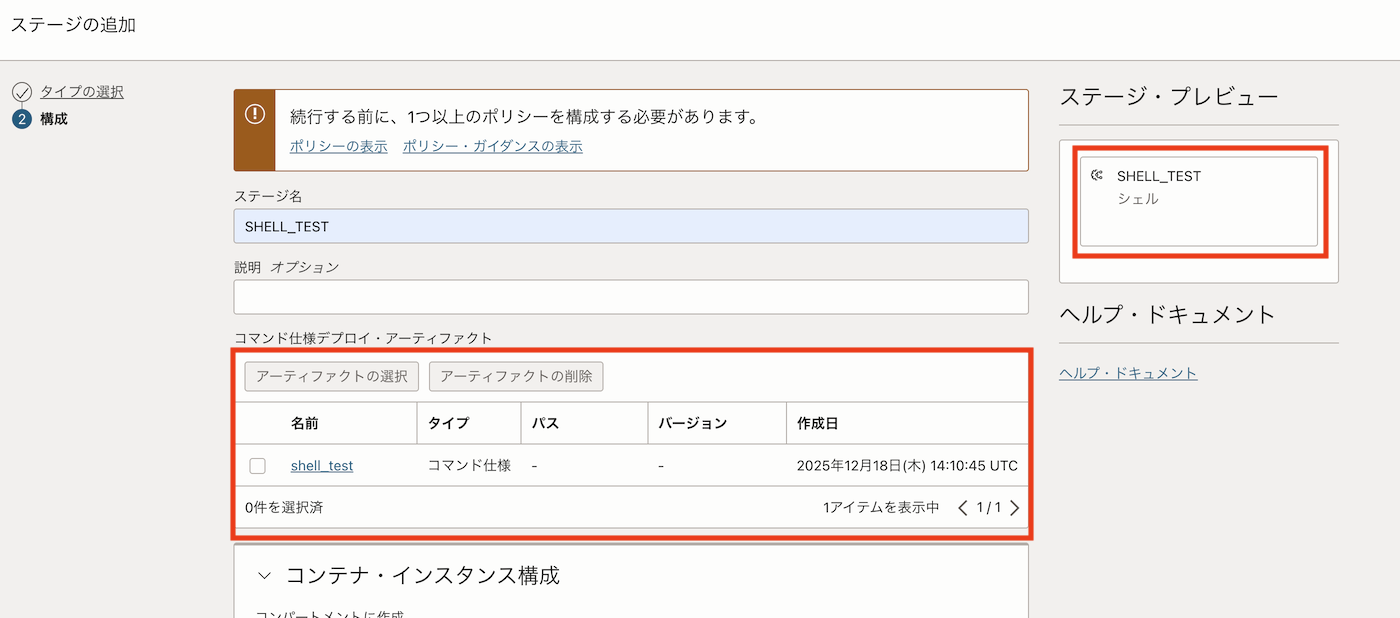 今回はアーティファクトがコマンド仕様なので、シェル・コマンドを指定します。