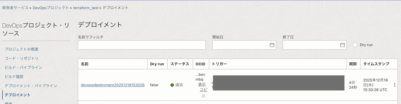 今回はコード管理からビルドパイプライン、デプロイメントパイプラインを使用して、コードの更新をトリガーにOCI上のリソースを更新するために使用します。